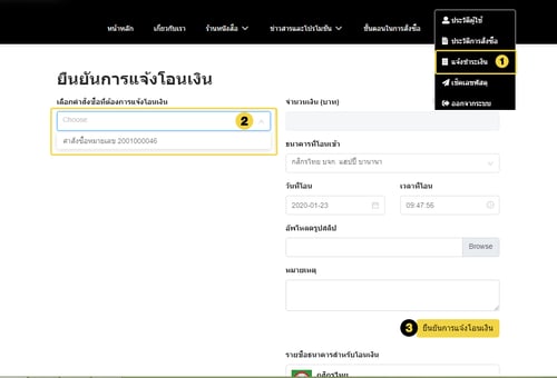 วิธีการแจ้งชำระเงินผ่านเมนูแจ้งโอนเงิน