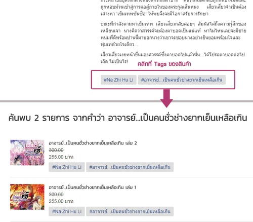 วิธีที่ 3. คลิกเลือกที่ Tags สินค้า เพื่อค้นหาจากชื่อผู้เขียน หรือชื่อเรื่อง เมื่อคลิกแล้วจะขึ้นรายการหนังสือตามภาพ